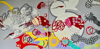My other paintings on exhibit, Promises in Action, Colour is the Keyboard, The Rear View of Diligence and Passion, and Clocking the Demise of Duty are more abstract yet intrinsically connected to this meditation through visual language suggesting pathways, direction, reason, integration and belonging.