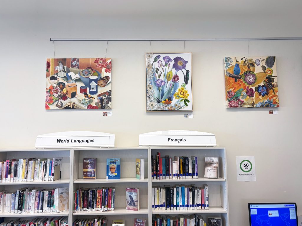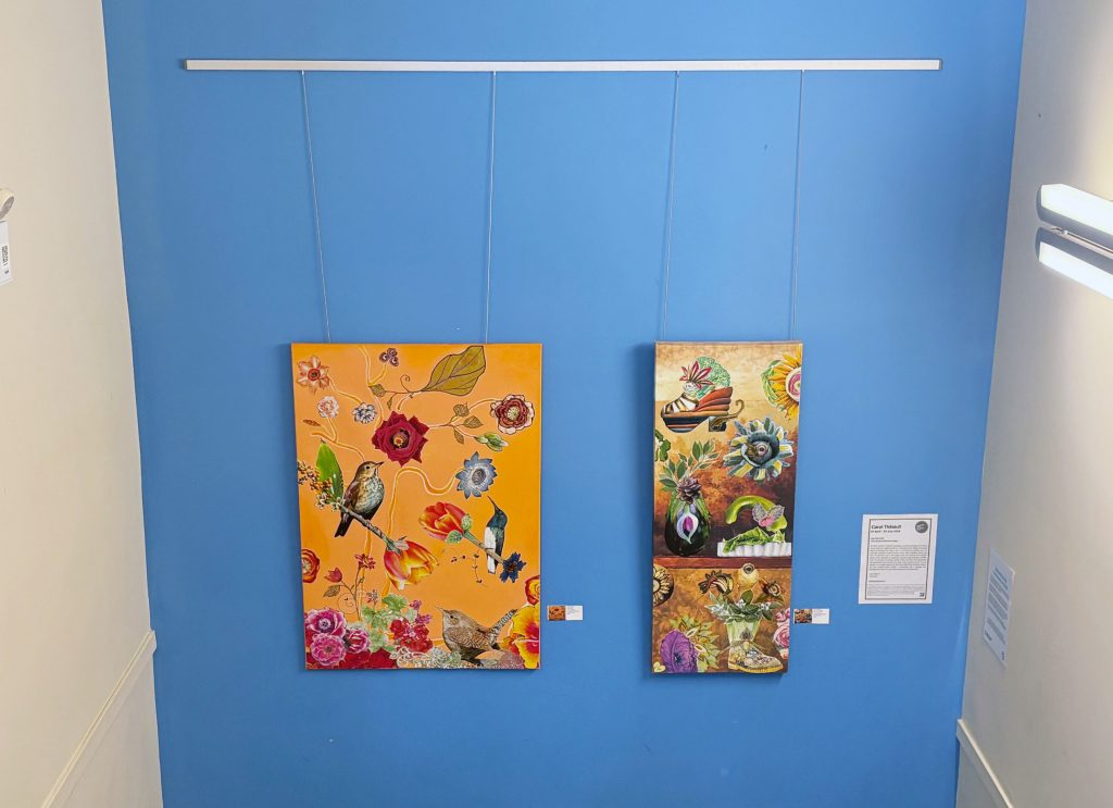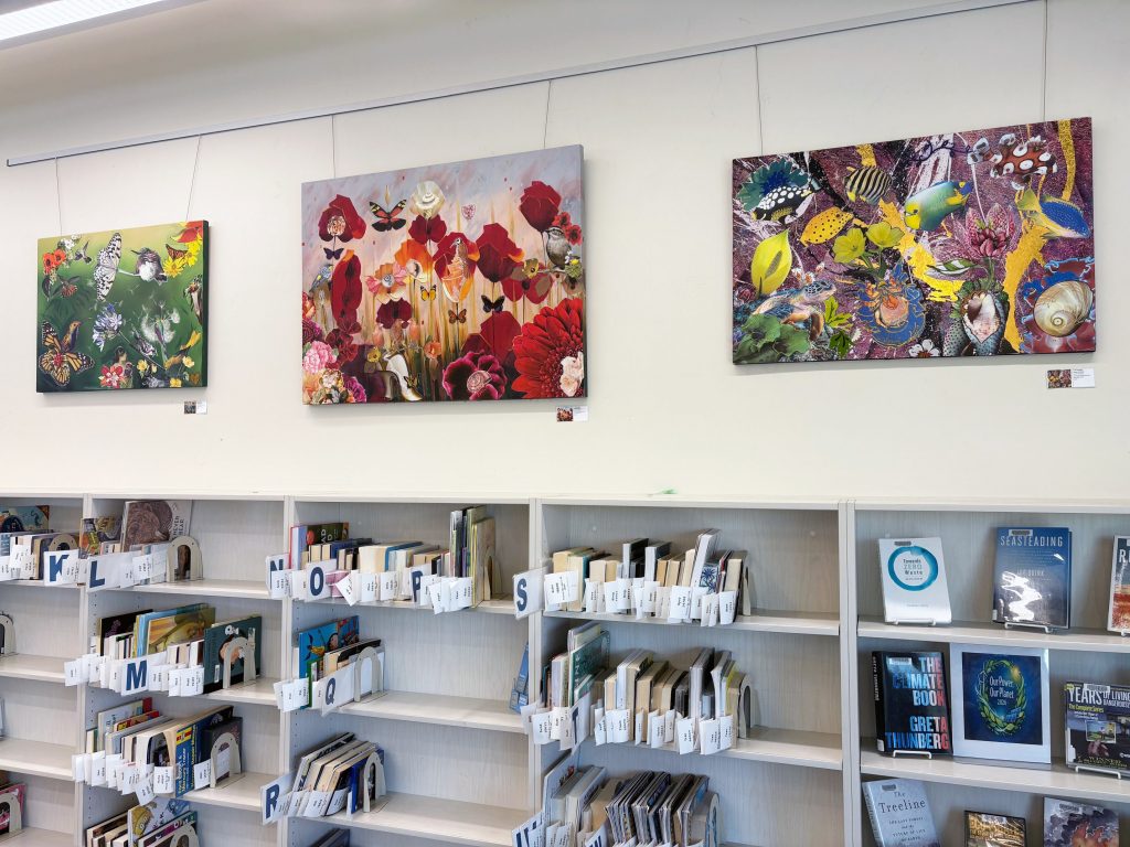 My latest venture of “collage” is salvaging unwanted, damaged and unloved canvas prints and original artwork from thrift stores, flea markets, and garage sales and bringing them back to life in a whimsical and uplifting way. I am absolutely inspired by nature’s bounty of birds, bees, butterflies, flowers and trees. All resources used in the collage come from recycled print materials (books, cards, calendars, & magazines), assorted costume jewelry and fabric ends. The process of collecting, sorting, cutting, selecting, and embellishing with appropriate items involves hours, days, or even weeks but when it comes together it is a magical experience. My hope is that these whimsical collages will make someone smile, inspire a conversation with a stranger, and ultimately live on and on in some other way and at some other time!