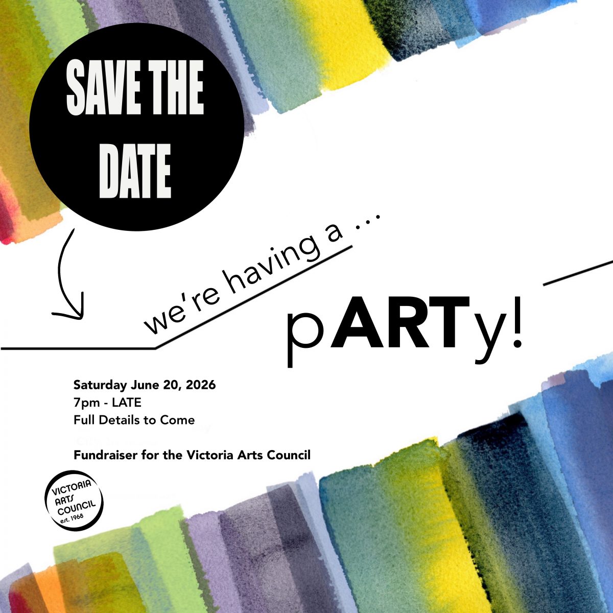 To register as a contributing artist, willing to donate 3 works of art, please email us no later than May 30: arts@vicartscouncil.ca with the subject line: pARTy! donation