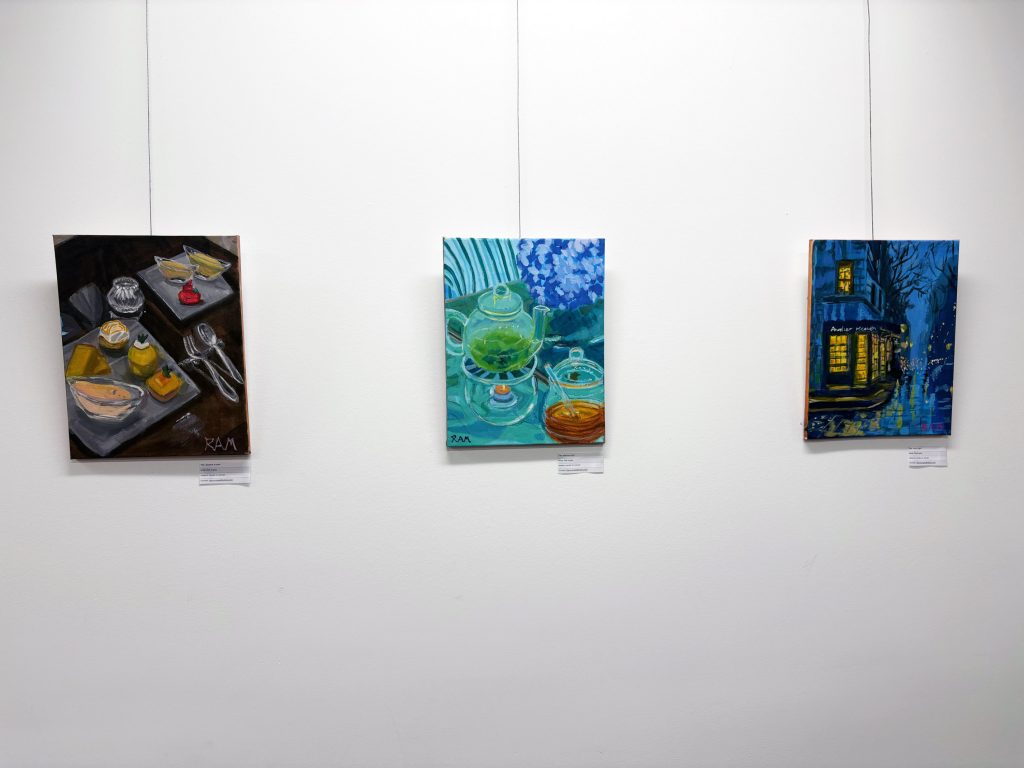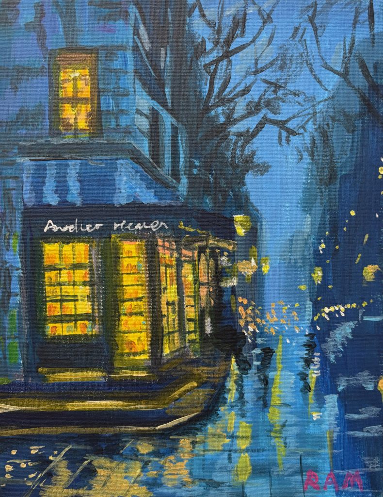 My paintings celebrate the poetry found in ordinary settings — a table after a meal, a reflection in glass, the warmth of shared light. I’m drawn to how color and composition can turn simple subjects into moments of stillness and contemplation. In this work, I sought to capture the fleeting elegance of a dessert table — textures, reflections, and the quiet intimacy that lingers after conversation fades.